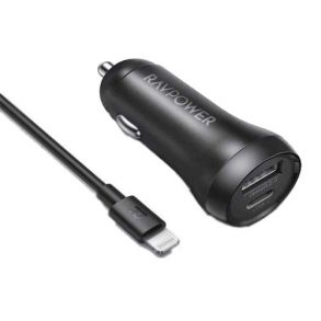 RAVPower 2-Pack PD Pioneer 30W 2-Port USB Car Charger with Type-C Lightning Cable Combo RP-VC015 – Black