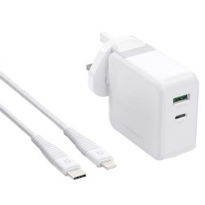 Pawa Stout GaN Travel Charger 45W UK Standard with Type-C to Lightning - Black