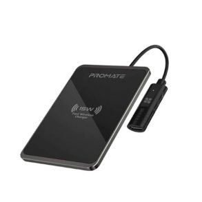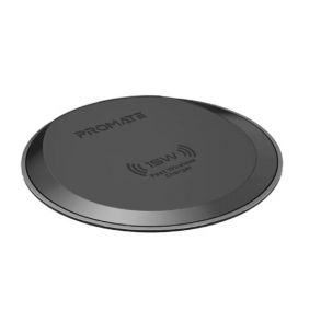 Promate AuraCard-15W Fast Charging Slim Metallic Wireless Charger - Black