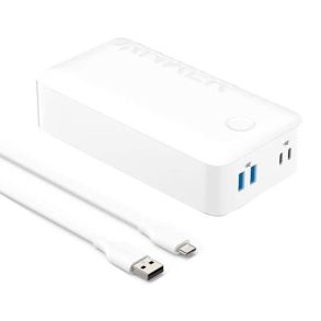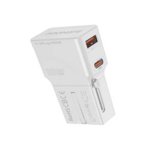 Powerology PWC031 Dual Port Retractable GaN Charger PD65W - White