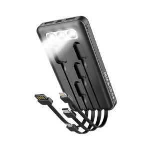Porodo 10000mAh Slim Power Bank PD 22.5W with Built-in Cables (PD-PBFCH029-BK) - Black