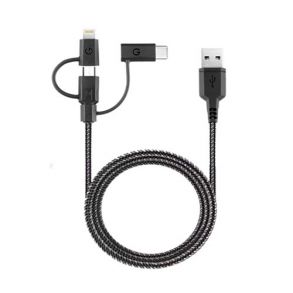 Energea NyloTouch 3 In 1 MicroUSB ,USC-C, MFI Lightning Charge & Sync Cable 18C - Black