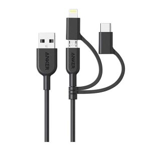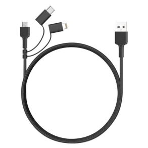 Aukey CB-BAL5 BK 3 In 1 MFI Lightning Cable With Micro USB & USB-C Cable - Black