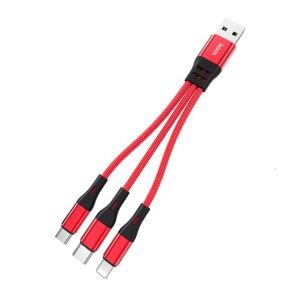 Hoco X47 3-in-1 Charging Cable 25cm aluminum alloy connectors and woven braid - Red