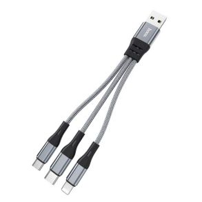 Hoco X47 3-in-1 Charging Cable 25cm aluminum alloy connectors and woven braid - Metal Grey