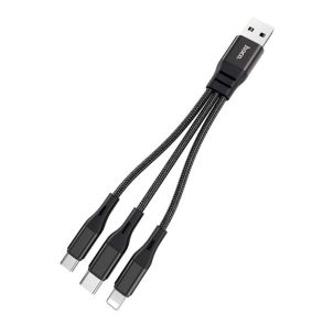 Hoco X47 3-in-1 Charging Cable 25cm aluminum alloy connectors and woven braid - Black