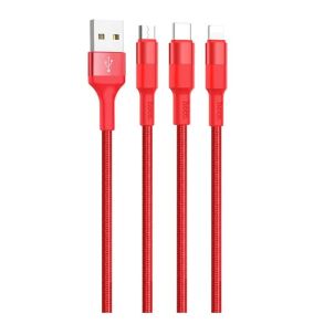 Hoco X26 3-in-1 Charging Cable for Lightning Micro-USB Type-C 1m - Red