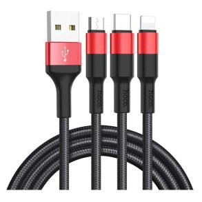Hoco X26 3-in-1 Charging Cable for Lightning Micro-USB Type-C 1m - Black & Red