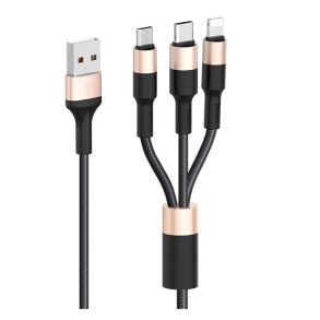 Hoco X26 3-in-1 Charging Cable for Lightning Micro-USB Type-C 1m - Black & Gold