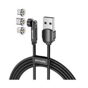 Porodo 3in1 TPE Cable with Rotatable Head for Micro + Lightning + Type-C - Black