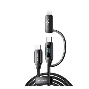 Porodo Dual-Connector Type-C Fast Charging Cable With Power Display 1.2m (PD-2N1C2CL-BK) - Black
