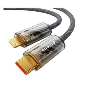 Porodo USB-C to Lightning Transparent Braided Cable Fast Charge 1M (PD-C27L1T-GY) - Grey