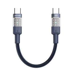 Porodo Braided 60W PD C to C Fast Charging Cable with Transparent Head 35cm (PD-60WCCTH-BU) - Blue