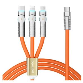 Porodo PD-3N1C100W-OG PD100W Three-in-one Cable 180 Degrees Rotation: 1.2M - Orange