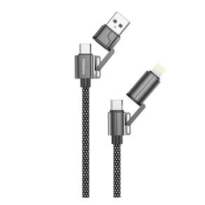 Porodo 4 Cables in 1 Aluminum Fast Charger Wire (PD-CBL0022-BK) - Black